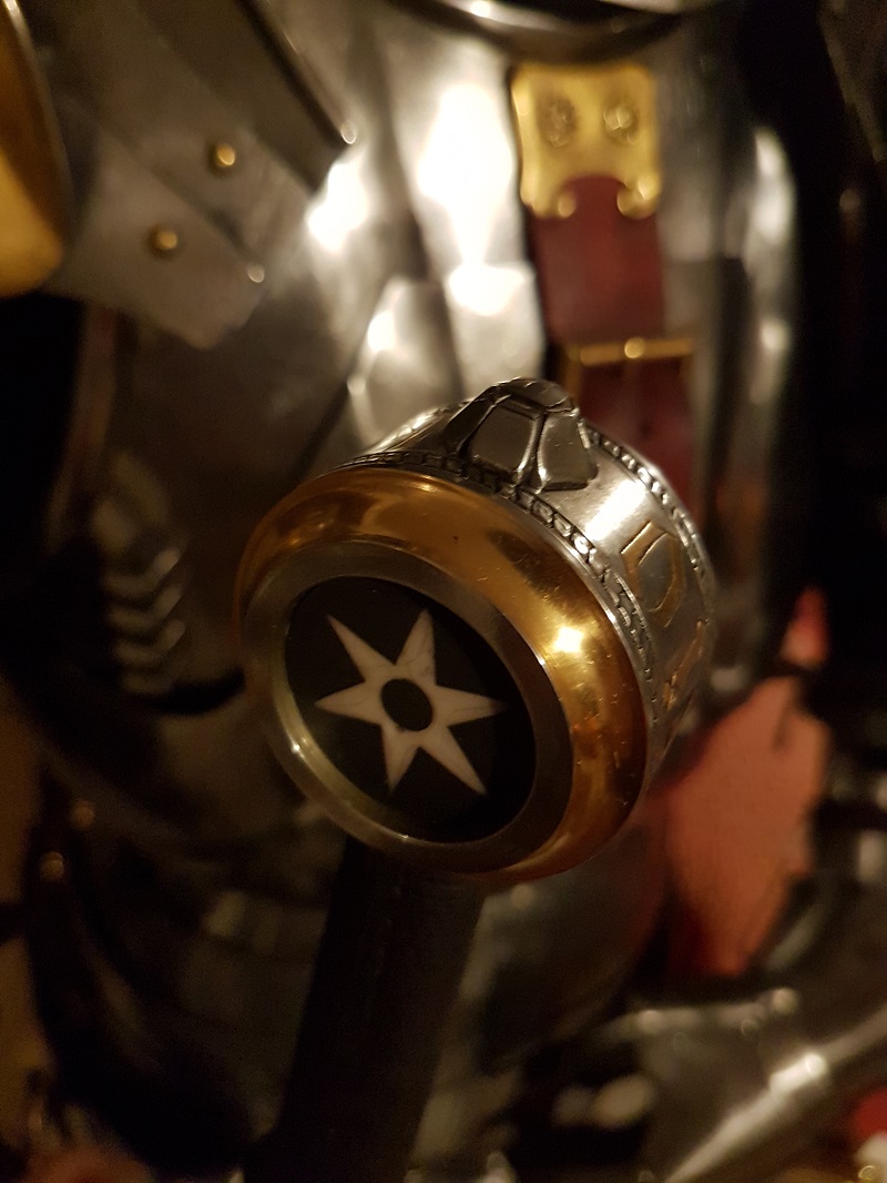 Craig from Manning Imperial made a longsword for me, which is a present from Margaret Swan. It is based on the Munich Sword, but the inscription was changed (from: oh maria, hilf mir bit) to bonitas (kindness) on one side and ratio (reason) on the other side, and the pommel inserts reflect my heraldry.