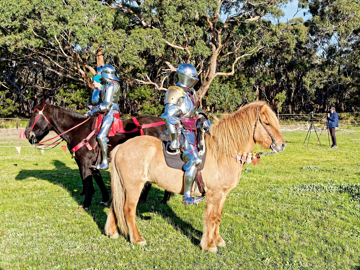 Keldan has done skill at arms, jousting and horse archery. He has been to a bunch of dressage, mounted combat, horse archery and other clinics under several different riders. He was successful at the 2019 Victorian Horse Archery Championships.